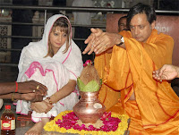 Former Union minister Shashi Tharoor and his close friend Sunanda Pushkar visited the famous Sai Baba temple in Shirdi and at the Shani Shingnapur shrine in Maharashtra’s Ahmednagar district on Sunday. Both sat side by side in the abishek at Shirdi temple.Shashi Tharoor and Sunanda Pushkar will get married on August 22.
